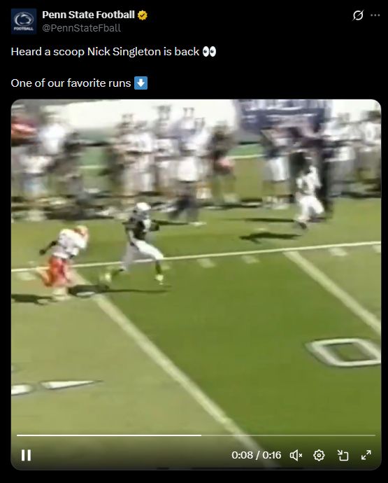 Then came the real fun. Penn State’s official X account joined the party as well. The caption read: “Heard a scoop Nick Singleton is back 👀 One of our favorite runs ⬇️.”