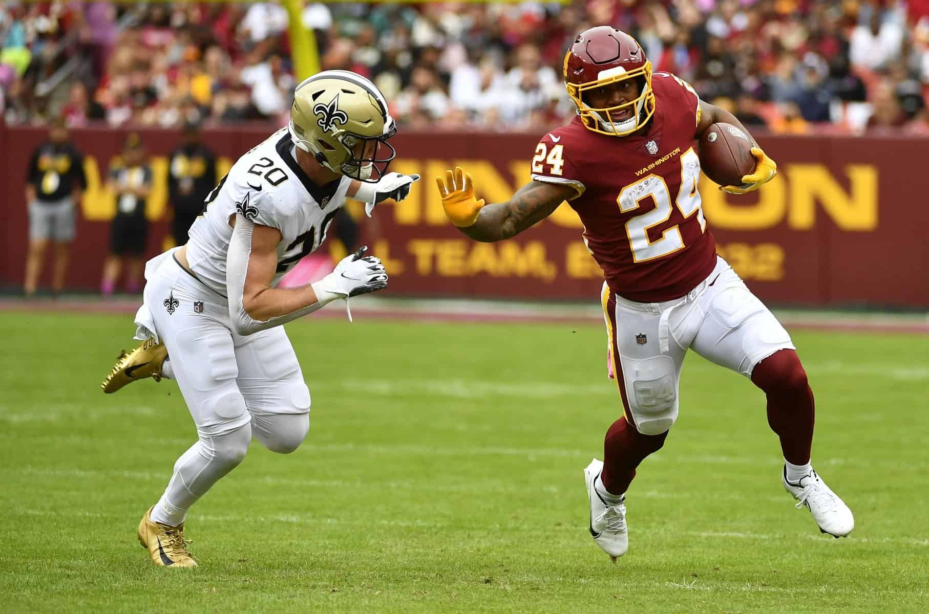 Does this mean we should be out on Gibson? No, I don’t think so. His touchdown regression from 1 every 15 carries to 1 every 37 carries was expected. Yet, Gibson is still one of the league’s more capable backs. Plus, Gibson has shown he has RB1 upside anytime McKissic is unavailable to suit up. Even if new QB Carson Wentz is a lateral move from Taylor Heinicke, Gibson is a mid-to-low-end RB1 in dynasty.