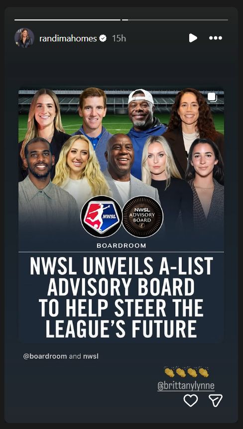 The NWSL advisory board will serve as mentors and cultural connectors, helping expand the league’s reach through campaigns, partnerships and innovative fan engagement. Other advisory board members include Sue Bird and Eli Manning for Gotham FC, Chris Paul and USWNT legend Julie Foudy for Angel City FC, Brandi Chastain and Sabrina Ionescu for Bay FC and Lindsey Vonn for Utah Royals FC.