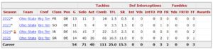 His steady improvement in each of the last three seasons culminated in the 28th spot amongst FBS EDGE defenders in PFSN’s CFB EDGE Impact Score. Dennis-Sutton capped his 55-game career with 127 tackles, 34.5 TFLs, 23.5 sacks, two INTs, and seven forced fumbles, production that would provide Arizona with an infusion of juice along the front.