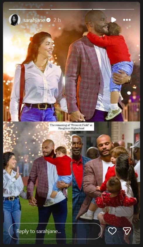 During the Dallas Cowboys’ bye week, quarterback Dak Prescott returned to his roots for a special honor. His alma mater, Haughton High School in Louisiana, officially dedicated its football field as “Prescott Field” in his name. The celebration on Thursday, Nov. 6, which the town also declared “Dak Prescott Day,” was a heartfelt homecoming for the star quarterback, who was joined by his fiancĂ©e, Sarah Jane, and their two children for the emotional event.