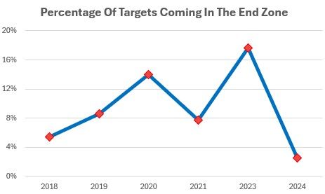 A stat like that is as much situational as talent-based, but does it matter if the chicken or the egg comes first? We are trying to project 2025 production, and all of that is factored in. We all like Ward, but there is a level of risk coming with the unknown under center and an offensive coordinator (Nick Holz) who doesn’t exactly have a sterling track record.