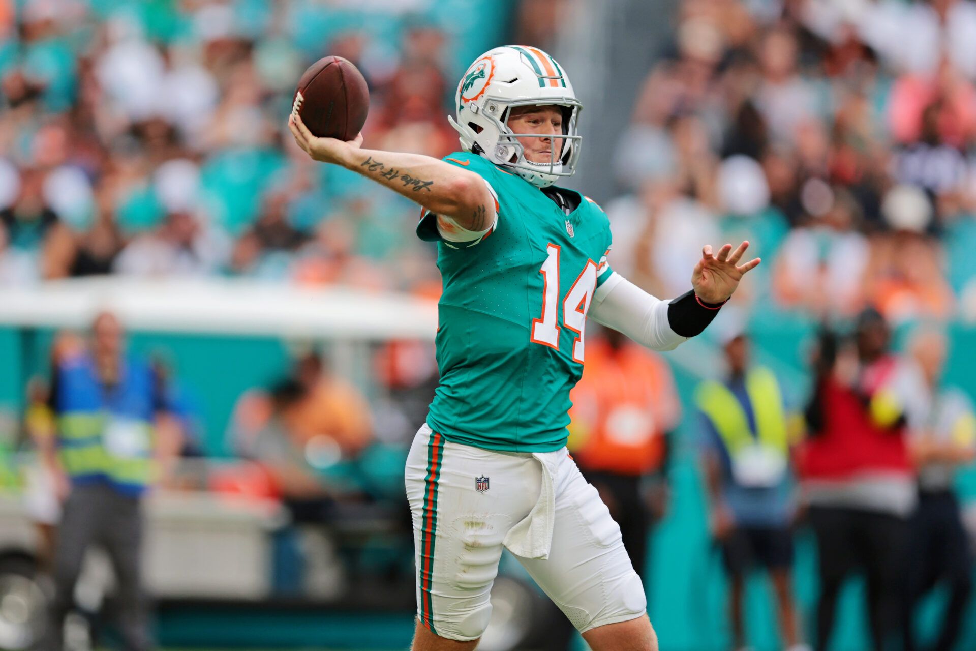 The interceptions came when he got too aggressive, and that’s going to happen in a debut. But I thought he largely executed the plan that was handed to him, got Jaylen Waddle as many catches as any of his teammates had targets, and didn’t make the boneheaded play when under pressure (eight pressured dropbacks: four completions and zero turnovers).