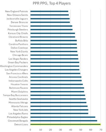 Oh yeah, and there’s a Year 3 tight end who didn’t have 55 receiving yards in a game until the middle of November last season. Sam LaPorta isn’t being labeled as a Tier 1 tight end, but most consider him a Tier 2 option that should trend toward his rookie season numbers (his PPR PPG dropped by 22.5% in 2024).