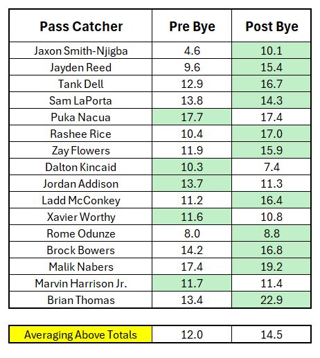 While nothing is ever guaranteed, the post-bye rookie bump has been one of the more reliable trends over the past few years. With so many nuances to an NFL offense, teams have used bye weeks to get rookies up to speed with some of the finer details of the playbook, ahead of increased usage.