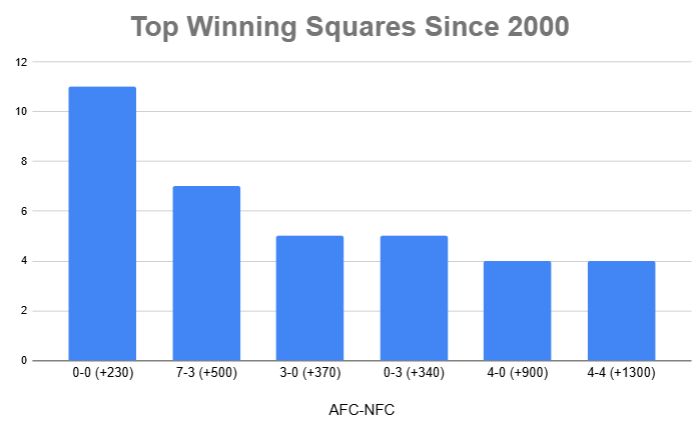 The numbers in which these games land at the end of each quarter are largely random, but the key numbers (0-3-4-7) are no secret. That leaves you with a simple question: which squares hit most often and, of those, which ones are best given the odds?