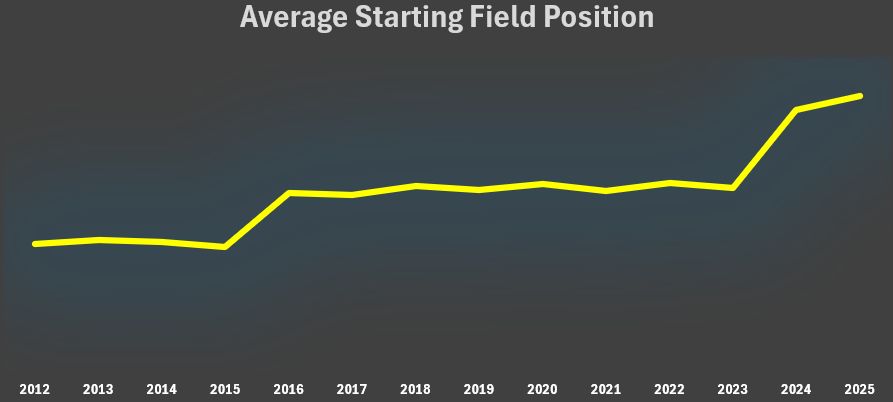 The league has wanted to add excitement to the game, and with roughly three-quarters of kicks being returned, the spike in starting field position shouldn’t be a surprise.