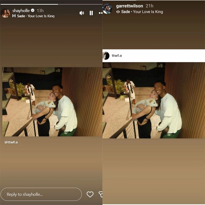 There are a few other photos that dropped hints without the confirmation, including a picture of them making a heart with their hands. Also, there was a photo on Holle’s story, with the two together, with Wilson wearing a “Shay Holle” hat. That photo was captioned “Grateful.” In another, there is the caption, “When two halves make a whole.”