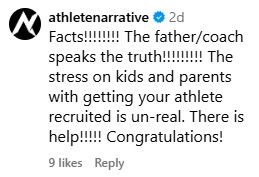 One comment highlighted the recruiting struggle: “Facts! The father/coach speaks the truth! The stress on kids and parents with getting your athlete recruited is un-real. There is help! Congratulations!”