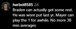 The depth factor resonated with supporters who watched Smith carry a heavy load in 2024-25. One fan noted, “Braden can actually get some rest. He was wore out last yr. Mayer can play the 1 for awhile. No more 38 min averages”