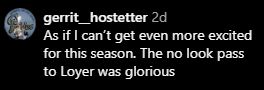 The no-look pass especially caught attention, with one supporter commenting, “As if I can’t get even more excited for this season. The no look pass to Loyer was glorious”