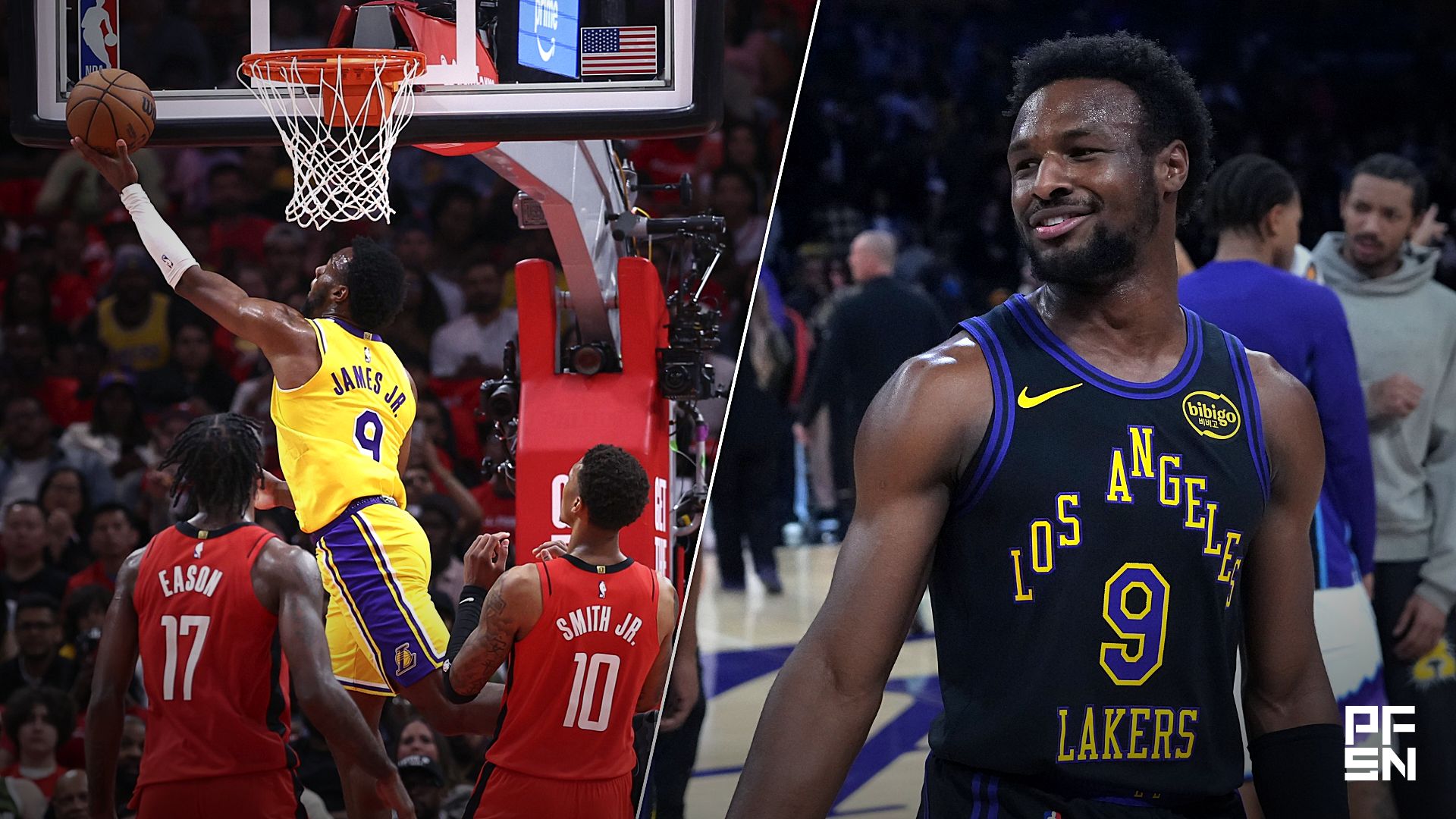 Bronny James Scores 1st Career NBA Playoff Points in Lakers-Rockets Game 3