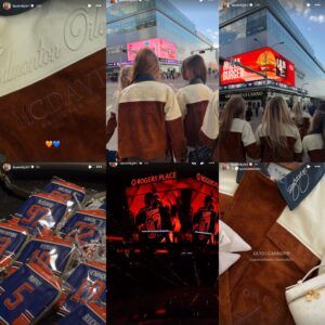 Desjardins added to the rollout through her own Instagram stories, posting several images from the same collection while focusing on her customized “DRAISAITL” jacket. Her posts aligned with the overall reveal, strengthening the idea of a unified look shared across the group.