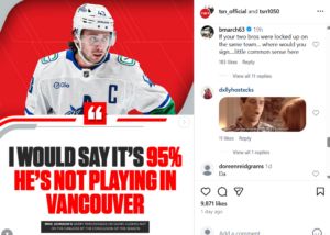 Marchand’s comment added fuel to the speculation. Responding to Johnson’s prediction that Hughes might leave Vancouver, he wrote,
