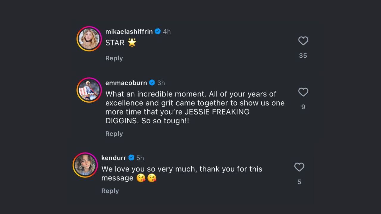 Shiffrin commented on the post, writing: “STAR 🌟”. Additionally, retired American middle-distance runner Emma Coburn commented: “What an incredible moment. All of your years of excellence and grit came together to show us one more time that you’re JESSIE FREAKING DIGGINS. So so tough!!”