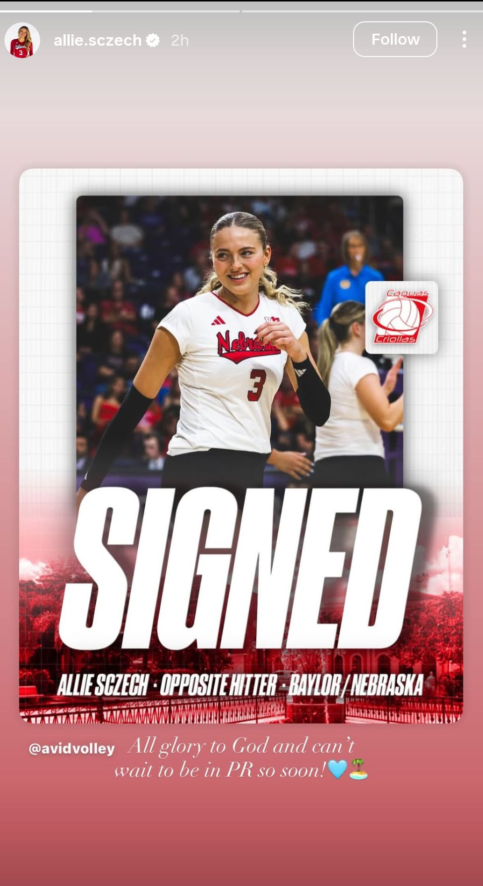 Nebraska Volleyball alum Allie Sczech has announced her next destination and will get her professional career underway with Puerto Rican side Criollas de Caguas. The opposite hitter will link up with the reigning champions ahead of the 2026 season.