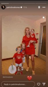The Mahomes family went all out in red for Sunday’s matchup, and Patrick couldn’t help but share an adorable reaction to Brittany’s photos of the family.