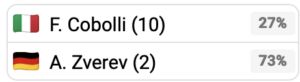 The PFSN Tennis Simulator is giving Zverev a 73% chance of winning this quarterfinal.