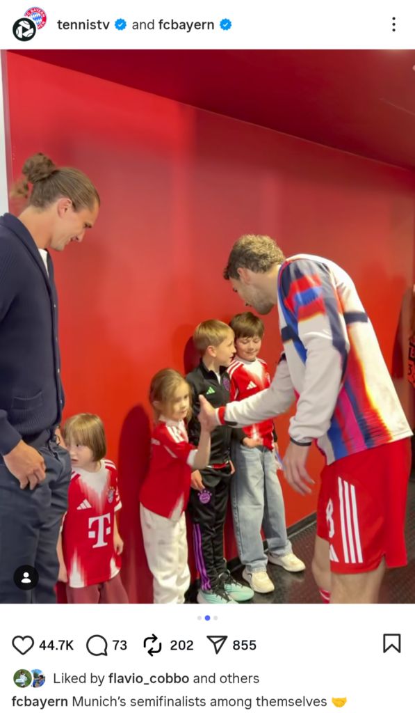 This interaction highlights the deep connection Zverev has with his home city and the club. While he was there as a fan, the support was mutual, as Bayern stars Joshua Kimmich and Serge Gnabry were spotted in the stands on Thursday to cheer Zverev on during his match.