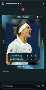 After his phenomenal comeback win over Popyrin, Zverev said he had to adjust his return position early due to Popyrin’s strong serve. He felt he played well overall, aside from one loose service game in the second set.