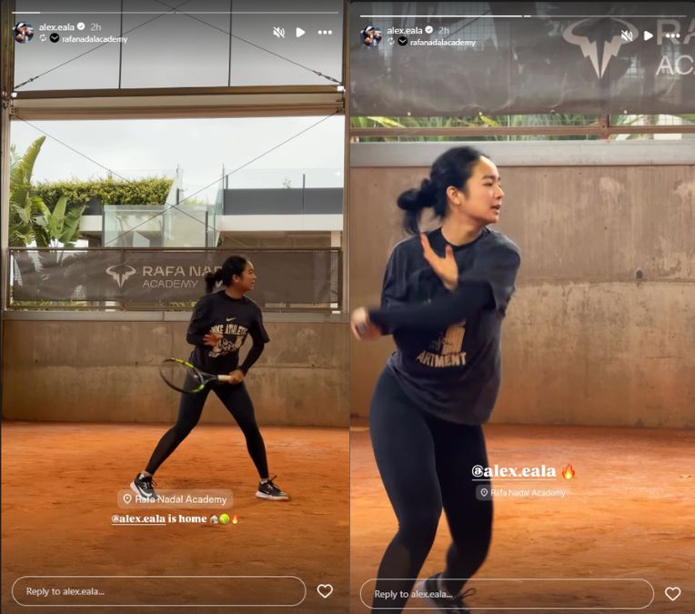 Through Instagram Stories, the Rafa Nadal Academy shared a clip of Eala’s hardcore training session on the clay court, which she later reposted. In the first picture, the caption is “@alex.eala is home 🏠🥎🔥,” and in the second, the message is “@alex.eala 🔥.”