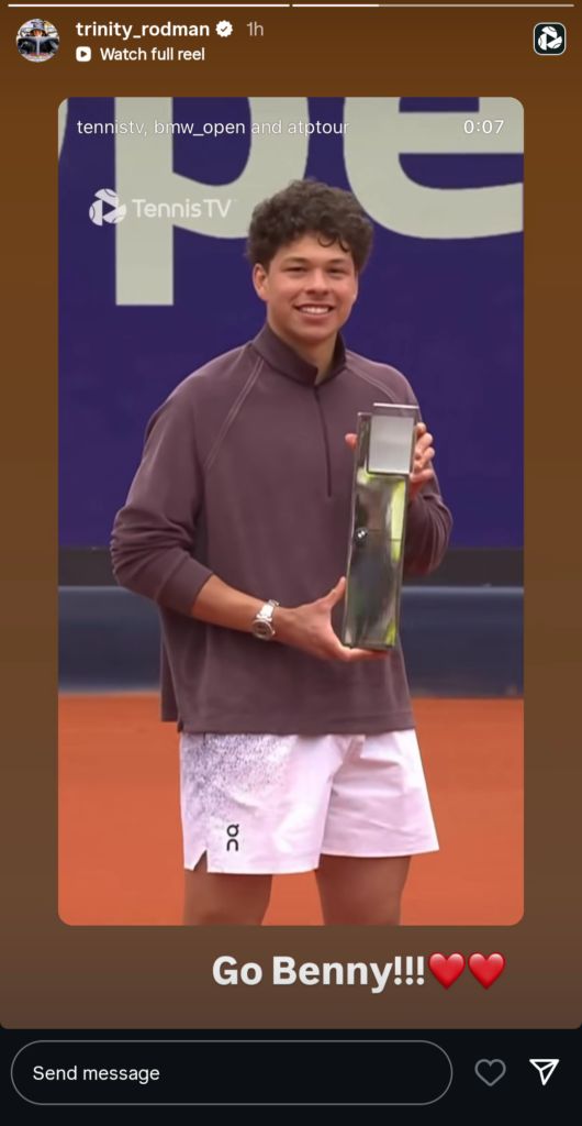 Following his title-winning run, Ben Shelton received support from his girlfriend, Trinity Rodman, a forward for the Washington Spirit. The soccer player and the tennis star went public with their relationship in March last year. Trinity Rodman later shared a clip from the trophy ceremony on her Instagram story, writing, “Go Benny!!!”