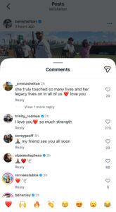 Soon after, the comments section filled with heartfelt reactions, including one from his sister Emma, who wrote, “she truly touched so many lives and her legacy lives on in all of us love you.” Meanwhile, Shelton’s girlfriend, NWSL star and Washington Spirit forward, Trinity Rodman, wrote, “I love you❤️ so much strength.”
