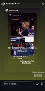That response, however, appeared to motivate Trinity Rodman, who reposted her boyfriend Shelton’s interview on her Instagram story and added, “get Ben’s dad to do a dance. Challenge accepted @benshelton.”