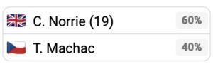 The PFSN Tennis Simulator is giving Norrie a 60% chance of claiming the win.