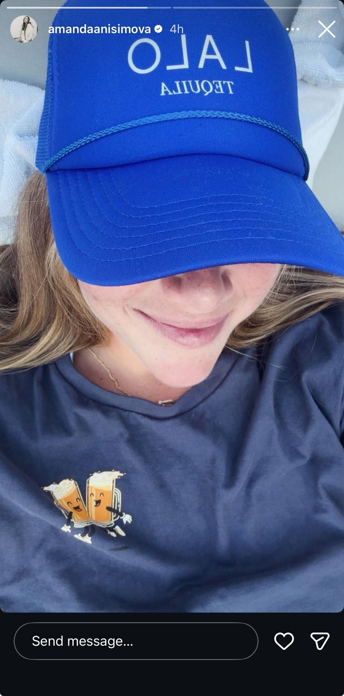 Although Anisimova is sidelined, she is making the most of her time away from competition. The world No. 6 shared a series of pictures on her Instagram story, the first showing her smiling with the upper part of her face shaded by a cap, followed by another of her enjoying the sun.