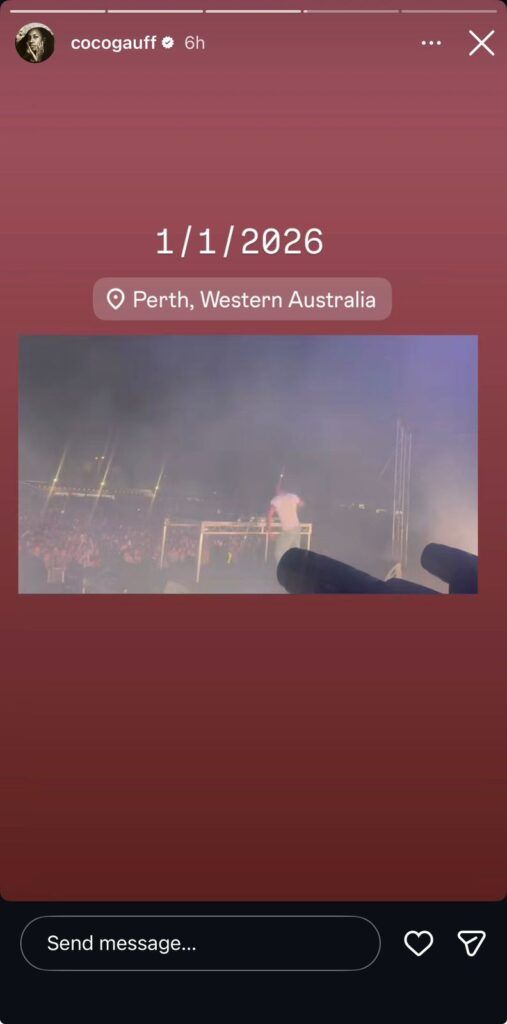 Gauff also posted a series of clips from a New Year’s Eve event she attended in Perth, offering fans a peek into her celebrations.
