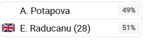 For Raducanu, her first serve percentage will be key as her opponent has an effective return game. On the other hand, Potapova needs to start well as it will be difficult for her overcome a deficit once again if she gives a player like Raducanu a headstart. Being the seeded player, the British player should come through this match.