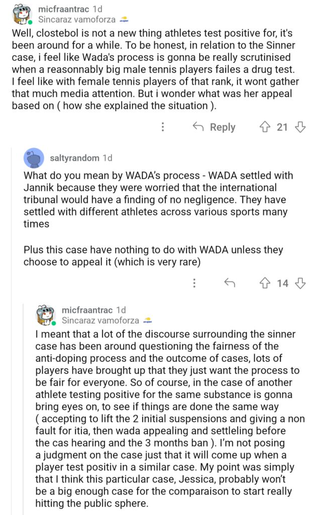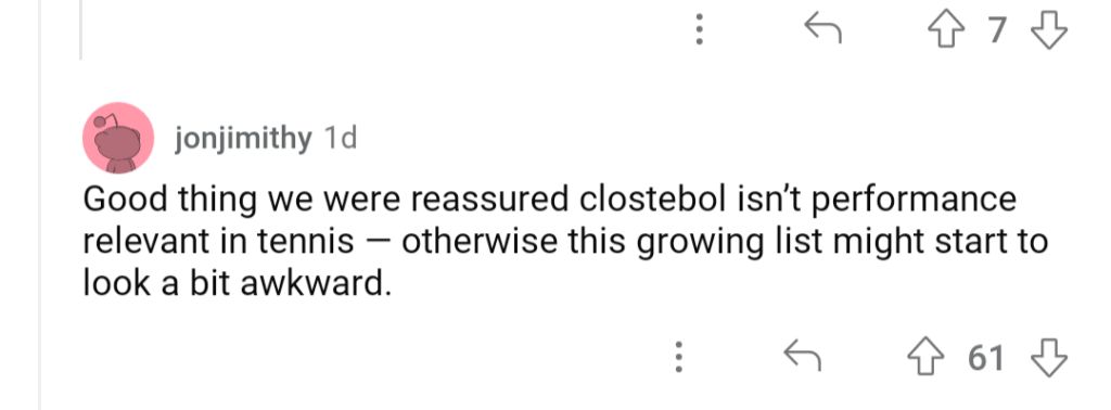“Clostebol, you say? I’m sure the discourse around this will be entirely rational and measured lol,” a fan wrote.