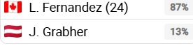 The PFSN Simulator has given Fernandez an 87 percent win probability in the upcoming match, which is understandable given the gulf in quality between the Canadian player and her Austrian opponent.