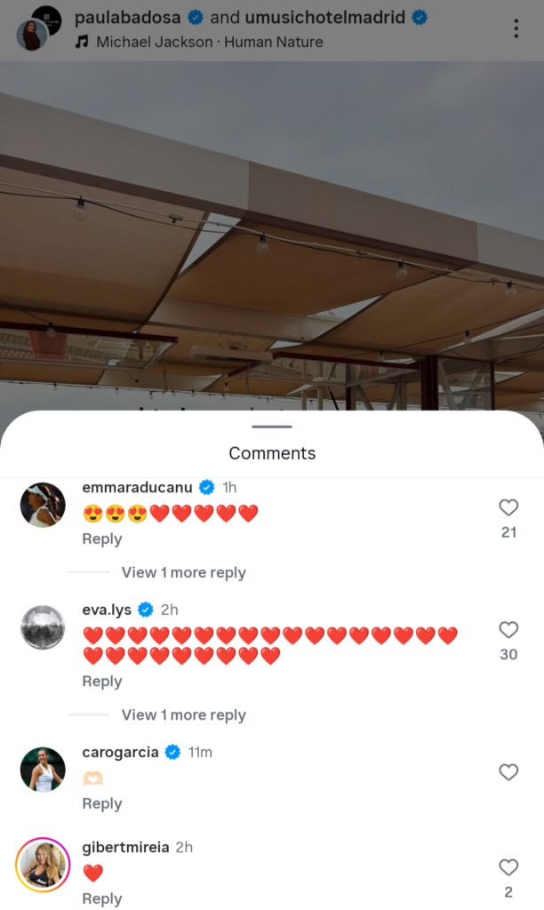 Her post garnered reactions from her mother, Mireia Gibert, who shared her thoughts, adding “❤️”, and the British star, Emma Raducanu, mentioned, “😍😍😍❤️❤️❤️❤️❤️.”