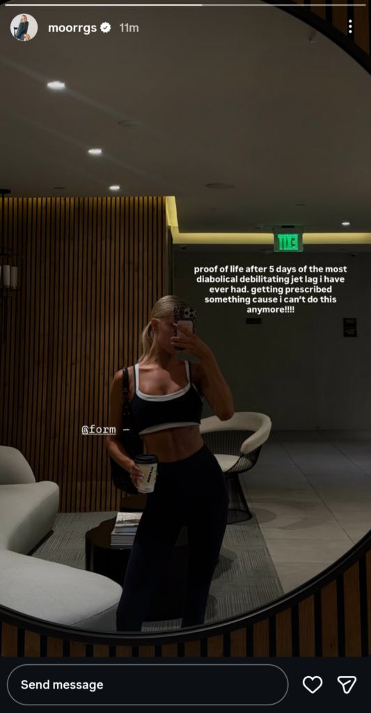 “Proof of life after 5 days of the most diabolical debilitating jet lag i have ever had. getting prescribed something cause i can’t do this anymore!!!!” she said.