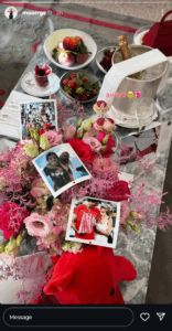 Continuing her tradition of supporting Fritz at his tournaments, Riddle arrived in Paris with him and shared photos of their hotel room on Instagram. The couple received a beautiful bouquet, a few of their pictures, a bottle of champagne, and a selection of exotic fruits, including strawberries, cherries, and raspberries, making their stay even more special.