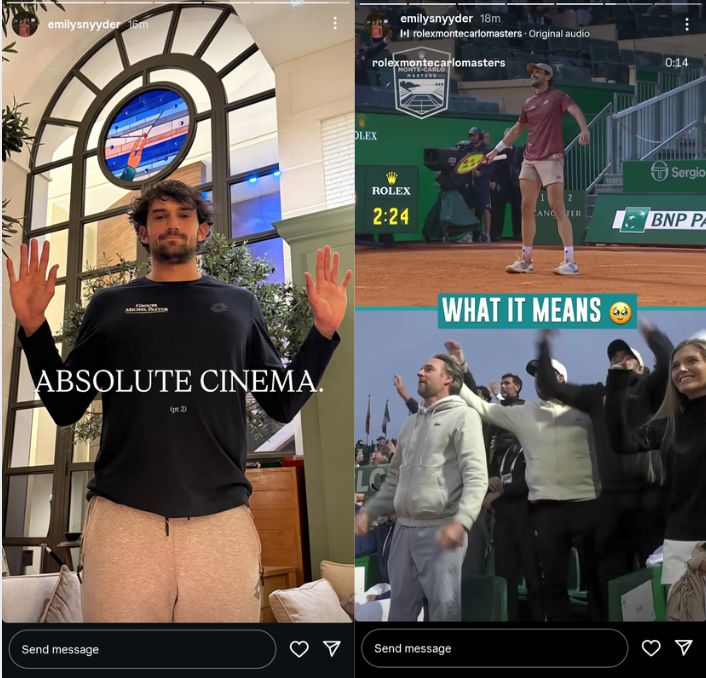 His girlfriend, a pillar of support in his on- and off-court journey, also shared heartwarming glimpses of his feat through her Instagram stories, warmly mentioning, “ABSOLUTE CINEMA” and “WHAT IT MEANS 🥹.”