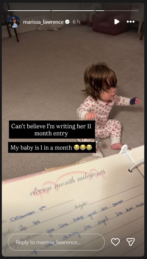 “Can’t believe I’m writing her 11 month entry. My baby is 1 in a month 😭😭😭,” she wrote.