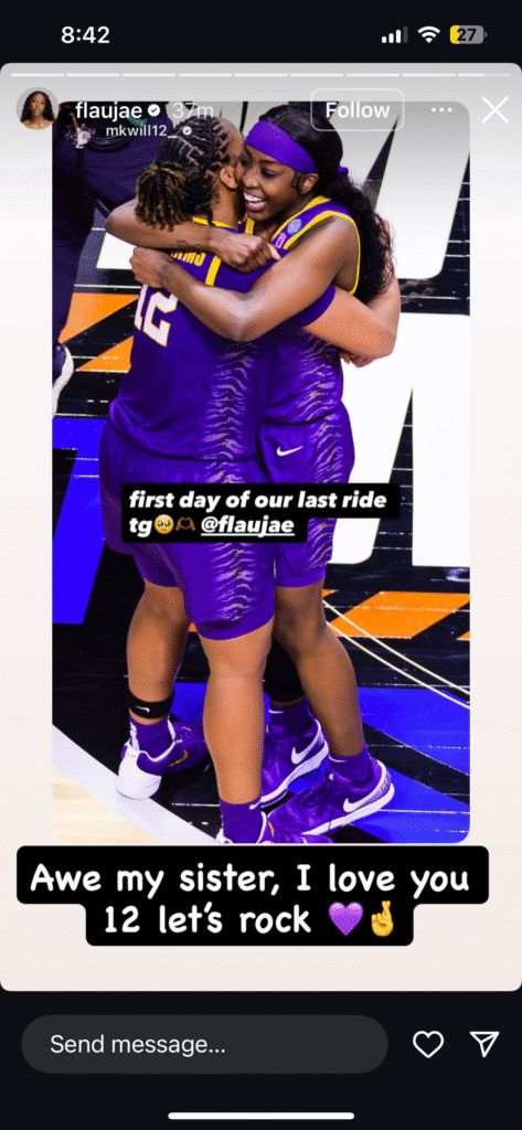 Earlier today, Mikaylah Williams posted a picture on Instagram of her and Johnson hugging in LSU jerseys. She captioned it writing, “first day of our last ride tg @flaujae.” Johnson reposted it and wrote, “Awe, my sister, I love you 12. Let’s rock.” That encapsulates the relationship between the two perfectly.