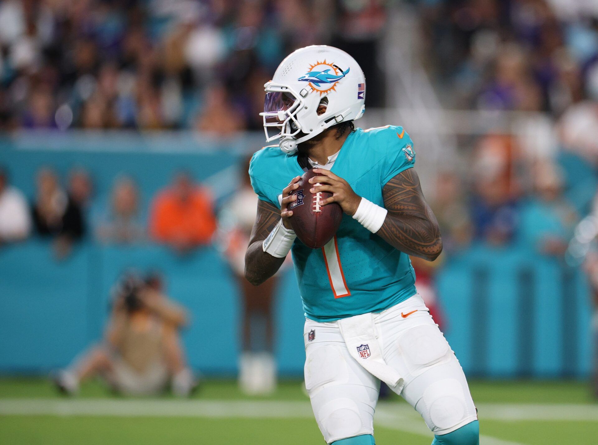 Dolphins fans have seen enough, and rightfully so. Tagovailoa has completed just 67.9% of his passes this season, but has 15 touchdowns to 11 interceptions. He’s thrown for 1,779 yards, but has been sacked 18 times. Currently, he’s 19th with a C in PFSN’s QB Impact Metric. His TNF performance left a lot to be desired, and many fans in Miami no longer want him as their quarterback.